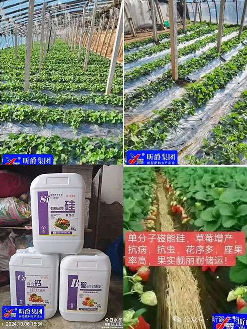 水溶肥厂家昕爵生产的逆生4号与有机酸性磁能硅,经过多年市场实践,抗死苗烂根的效果特别特别棒。就是在草莓上。治苗期的红中柱根腐病。老棚重茬厉害。用户说我这才第4年种,按理说这不能算是重茬特别严重的。但是今年草莓苗死的特别厉害,在用逆生4号和有机磁能酸性硅之前,我都是不停的去栽苗薅了再栽。因为我灌了很多的药,也冲了也喷了,根本就治不住。当时他们当地最有***的一位姓高的,这个县里边的高级农艺师,到他的棚里边看了后说你也别补苗了,再补还是死。抓紧时间种下茬换个作物别再种草莓了,它一旦死就没招。得亏我这个番茄苗还没有定。咱的市场人员来了带着这个产品,让我用逆生4号和磁能酸性硅。让我上边喷,下边滴灌。他说反正免费的嘛,有效果了给钱,没效果了不给钱再试一把吧。这一试他说那真的在第四天都看到效果了。就是下边滴灌滴的时间稍微长点,让整个田块跑的全都是水,就跟那个大水灌了一样。一个棚正好是一亩一分地1瓶逆生4号1000克,加1瓶磁能酸性硅1000克。直接走滴灌整个田全部都是水。滴灌均匀了水一停就这一遍真的就不死了。客户说没染上的没被传染。而且轻微的染上病害草莓芯儿开始直头了,头开始直起来不打蔫了。然后又叶面喷施一壶水50克逆生四号+50克磁能酸性硅。7天以后只叶面喷施了一遍一直到现在一个都没有死的,根本挑不出来有死的了。