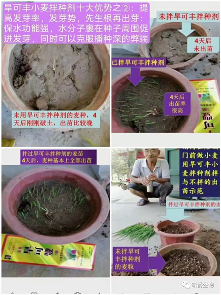 2、提高发芽率(保水功能强,水分裹在在种子周围,促进发芽),提高发芽势(克服播种深的弊端)先生根再出芽;