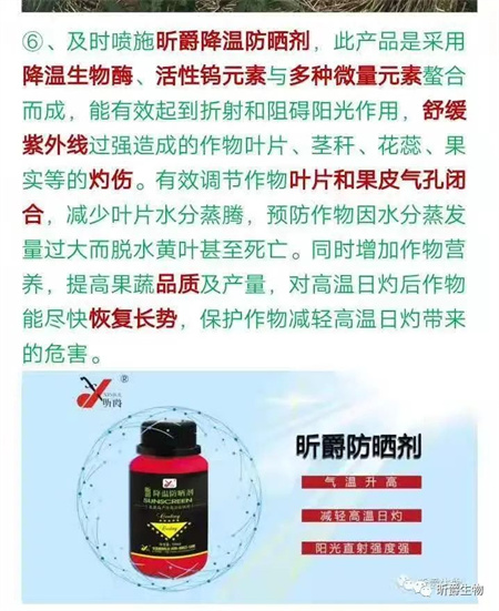 1、在花期和幼果期对树冠进行间歇喷水 首先修复根系,促进根系生长是首要的,否则灌再多肥水也难以吸收,因此建议在这一阶段追肥,优先使用水溶性肥料冲灌,同时加入天然芸苔素。 一方面,水肥同灌既能缓解干旱,又保证了营养的速效性;另一方面,加入天然芸苔素有利于修复肉质根,促发毛细根,促进根部营养吸收; 在花期和幼果期对树冠进行间歇喷水。这样有利于提高柑橘果园相对湿度。在日最高气温3O℃时,每天喷水2次;日最高气温35℃时.每天喷水3-4次,可改善橘园小气候。高温达到35℃以上时,喷水灌水时间最好是在下午7点以后或者早上9点以前。