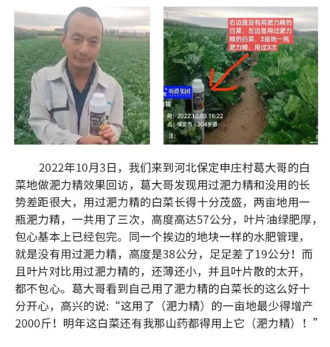 ***大爆点:作物用上淝力精后打上后3天后叶面发绿发厚,光合作用大大增强。