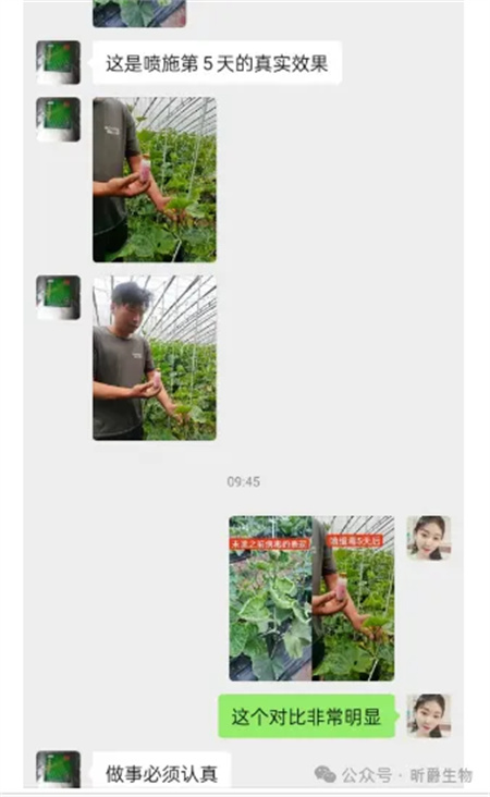 我们先一起看个市场案例。地点:河北廊坊 作物:黄瓜,当地病毒病非常厉害,在之前选择5家产品,都没治住,联系到了水溶肥厂家昕爵集团,说了当时情况,我们的业务经理听过后,给发过去4瓶样品让实验。