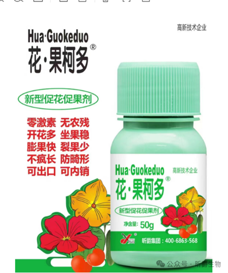 水溶肥厂家昕爵经过5年的科研攻关,长达3年在全国各地实验隆重推出一款花多果多的产品——花·果柯多,提高授粉、促进开花坐果、无农药成分,主要用于茄瓜果类作物,促进开花,提高座果,还能促花壮花果多果又大。